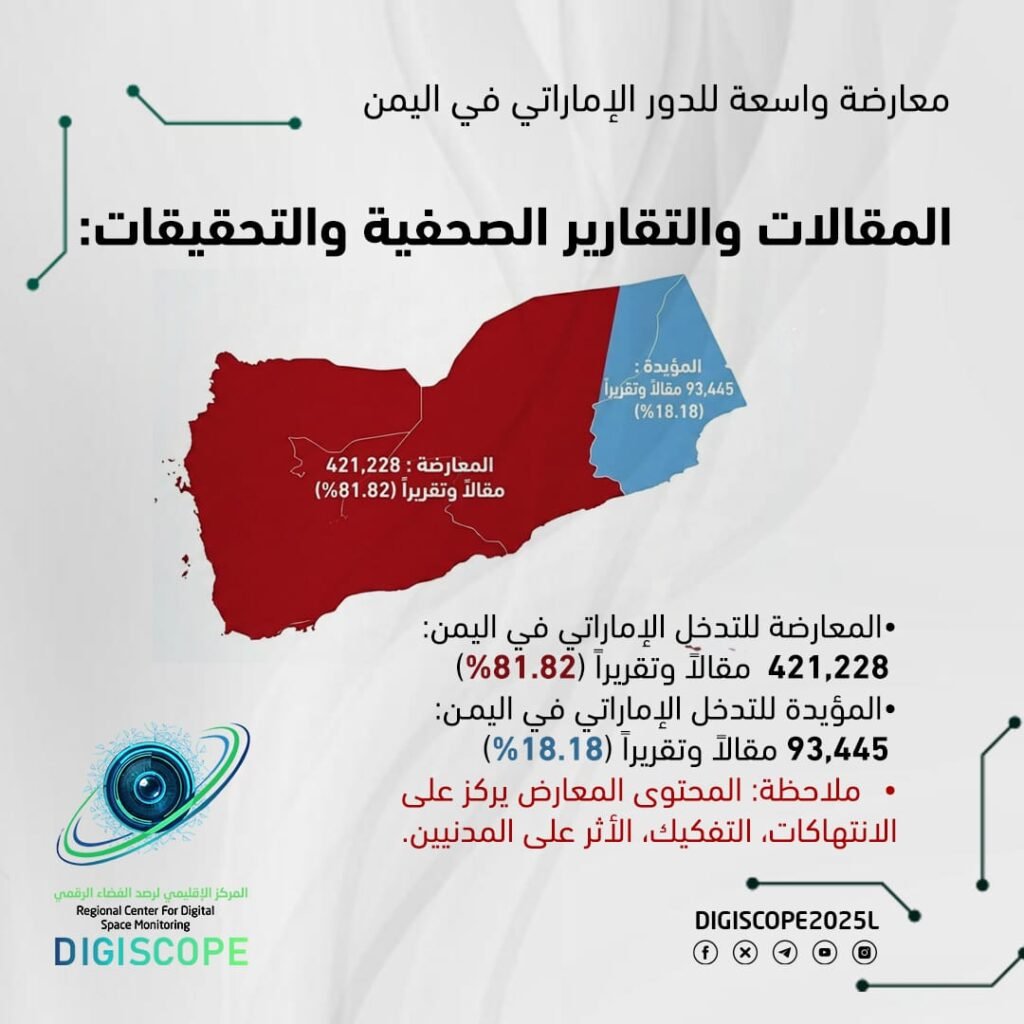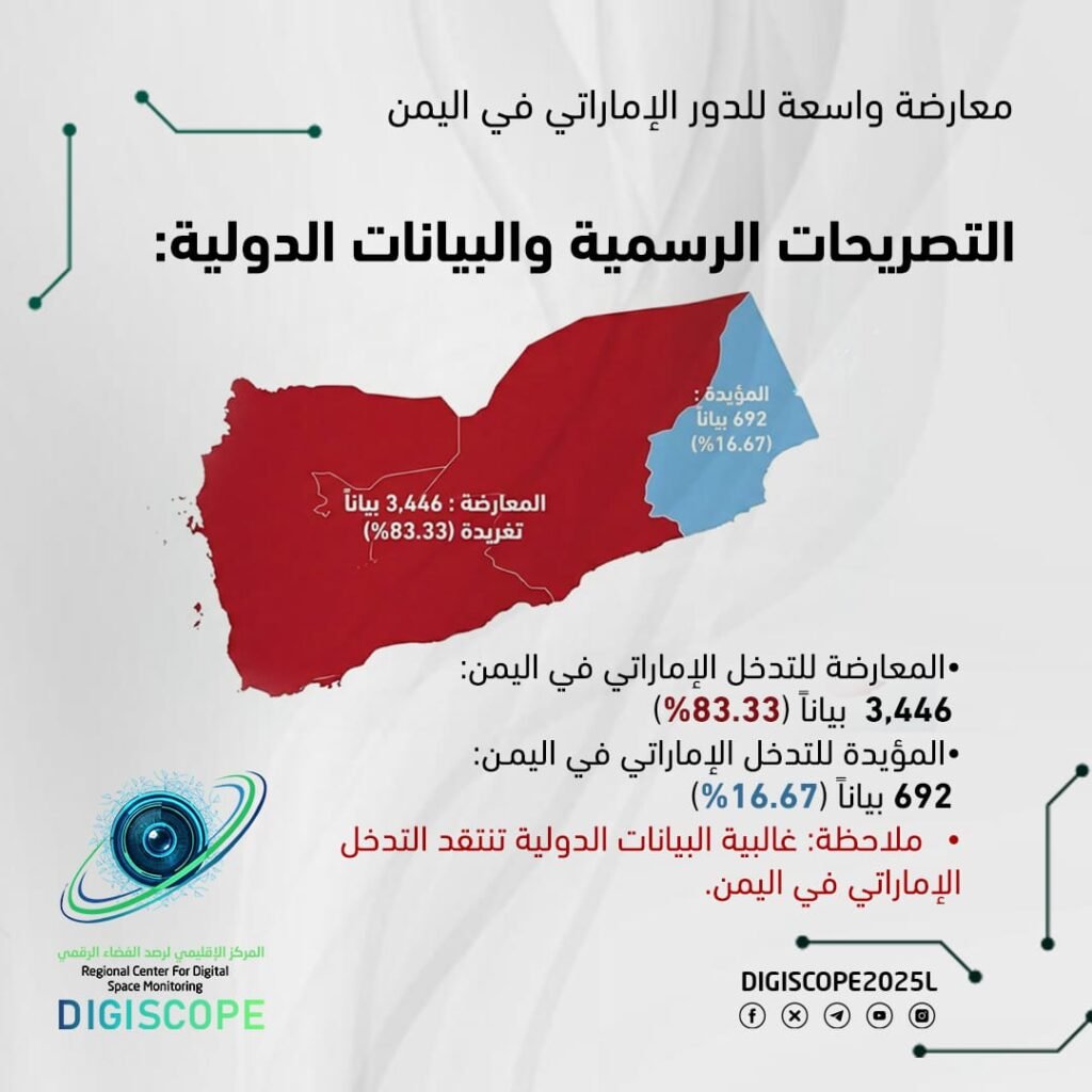 6. الإعلام الرقمي يثبت أن التدخل الإماراتي أثار قلقاً واسعاً، وأن الرأي العام العالمي يميل إلى رفض هذا الدور.